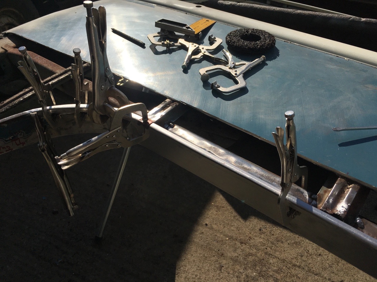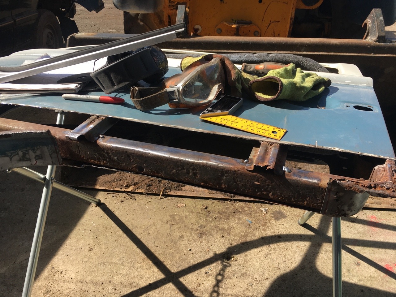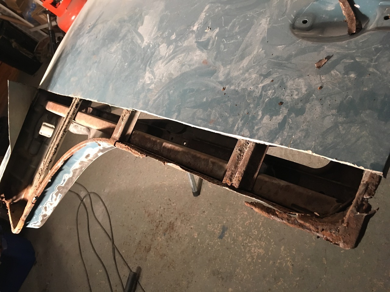 I’ve just bought a nice 3 in 1 sheet metal machine which will help in making up the curved corner section and some U channels. Quite enjoying repairing these!