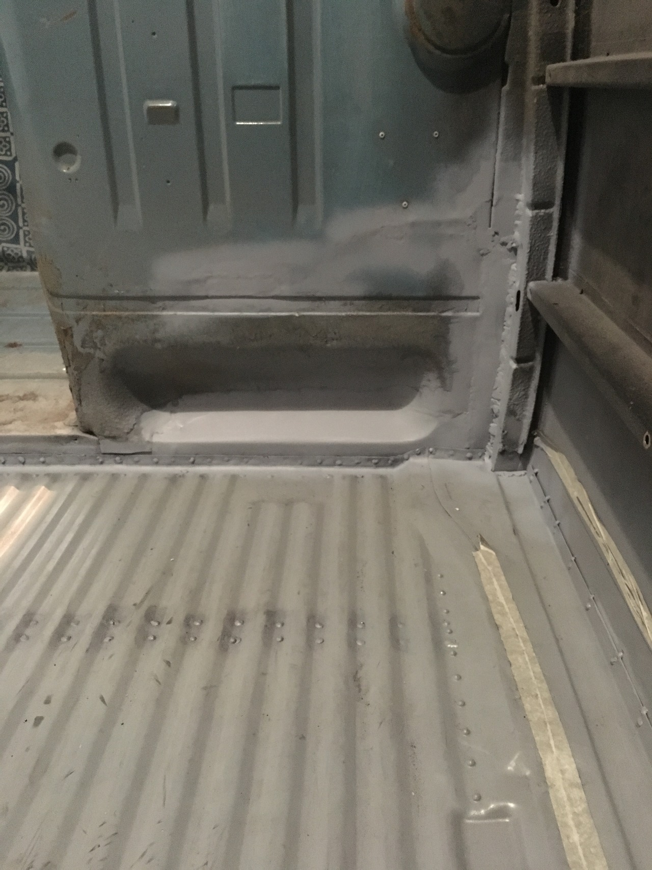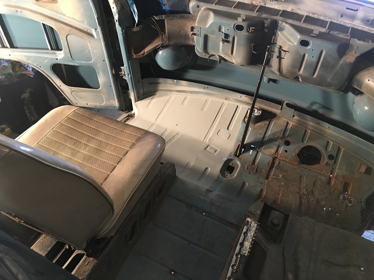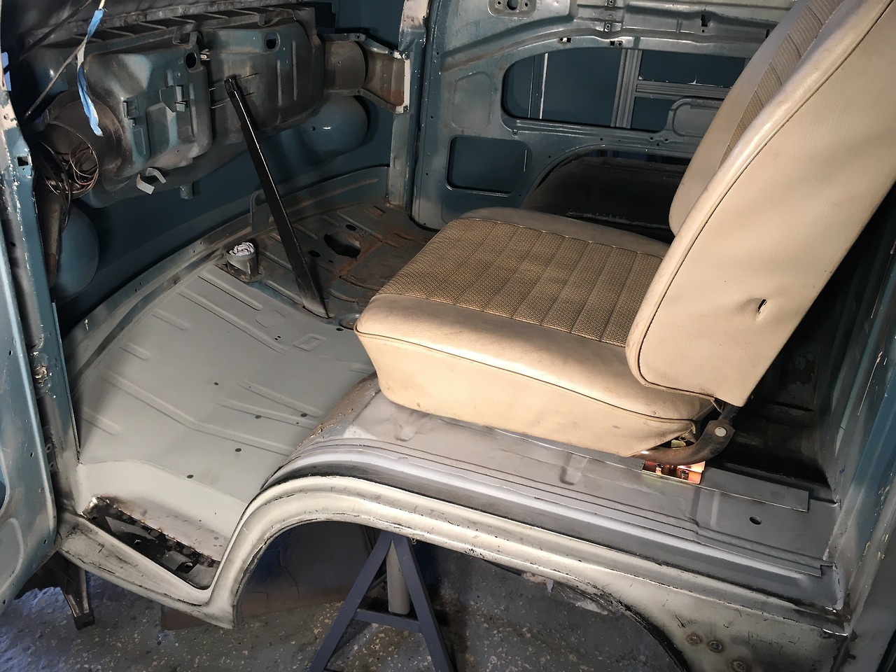 Passenger cab floor dressed and zinc primed. Good as new now.
