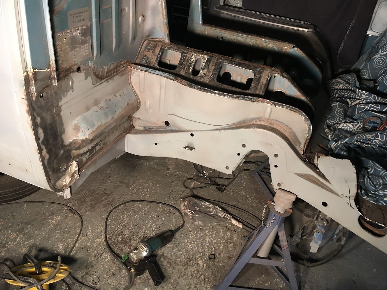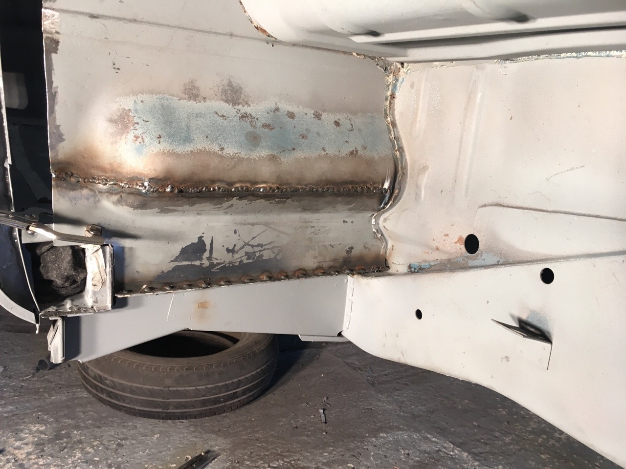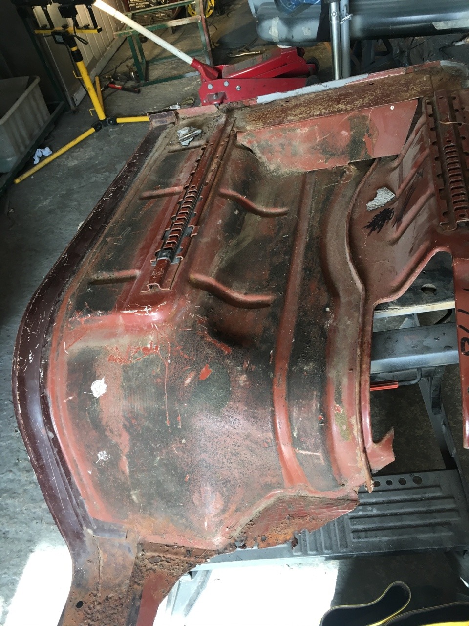 Passenger cab floor dressed and zinc primed. Good as new now.