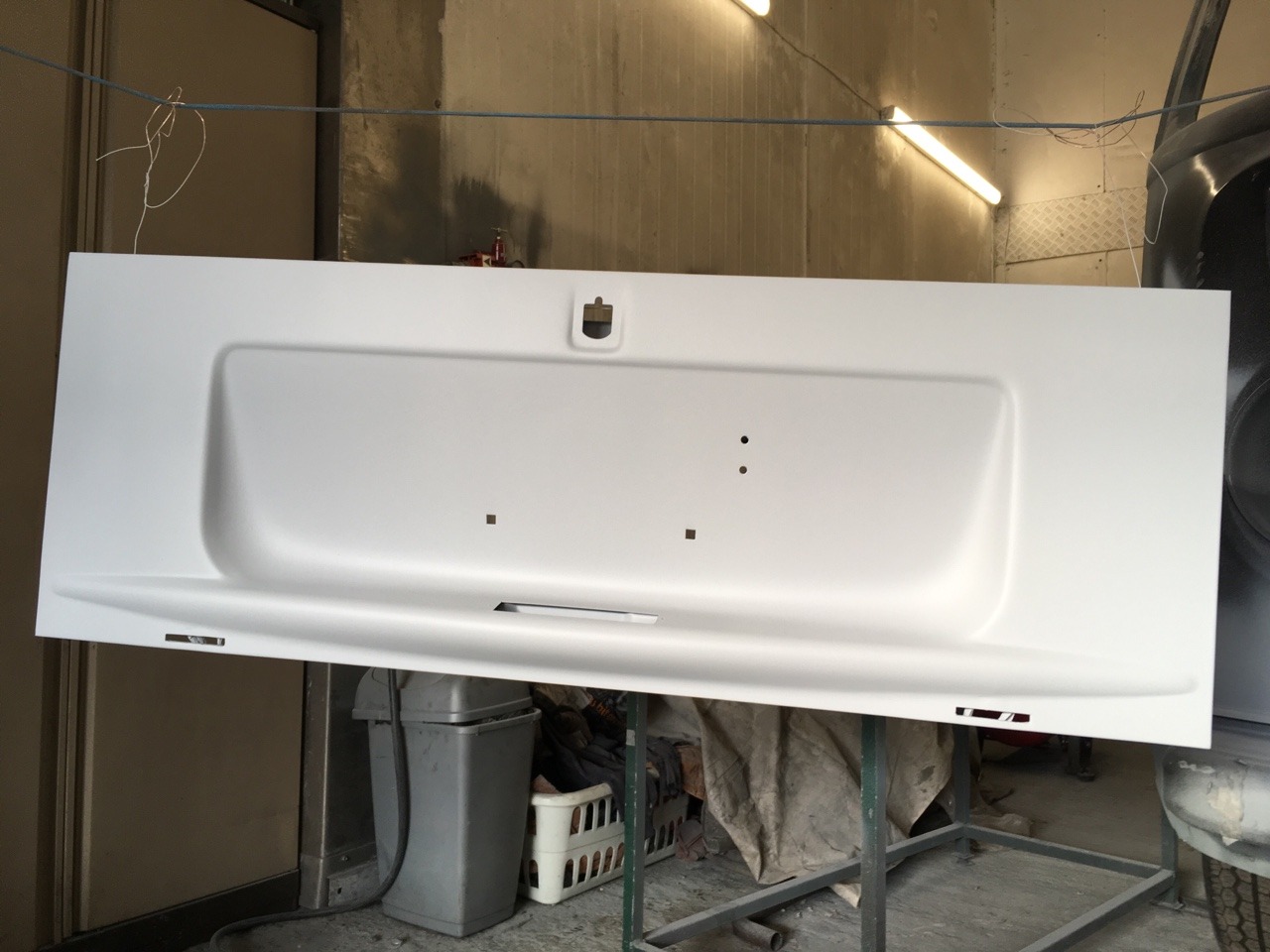 In between welds I trial fitted the front headlamps on the front panel. The new panel needed a bit of tweaking to get the lights to fit as the bowl surround lip wasn’t quite bent correctly. A bit of persuasion with some mole grips saw them go in: