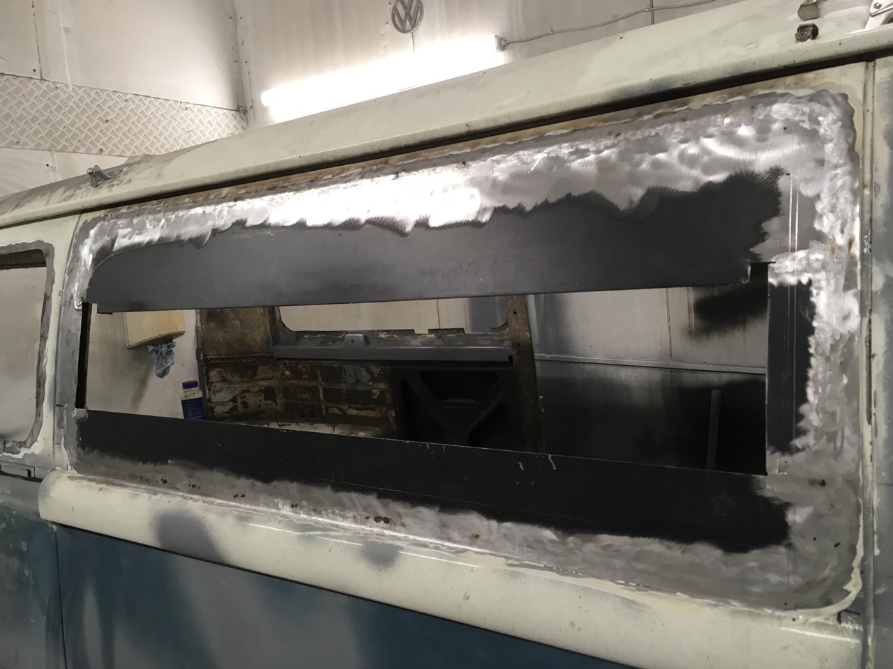 Finished welding in the window surround repairs. Just need to cut it to fit the window and fill a few pinholes with weld.